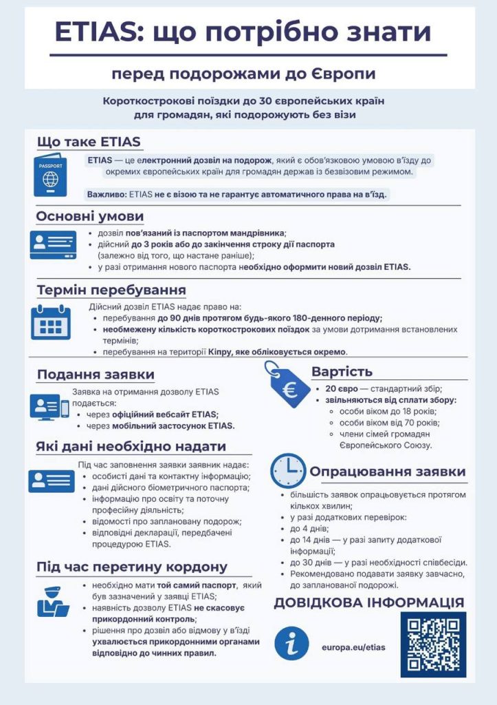 Правила поездок в большинство европейских стран будут изменены. Начиная с четвёртого квартала 2026 года, граждане стран, пользующихся безвизовым режимом, включая граждан Украины, при въезде в страны Шенгенской зоны на срок до 90 дней в течение 180 дней должны будут заранее получить разрешение на въезд для краткосрочного пребывания Речь идёт о внедрении новой системы ETIAS (Европейская […]