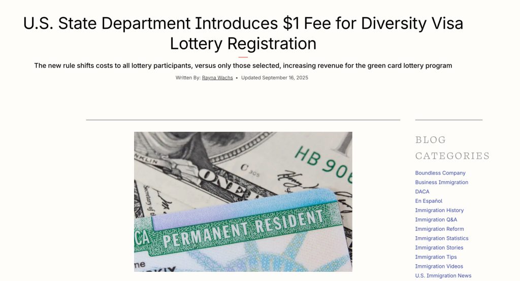 Читати даліСША запровадили плату за участь у лотереї Green Card – тепер подача анкети коштує $1. Крім того, вартість візи для в’їзду до Америки збільшиться з $185 до $435.
