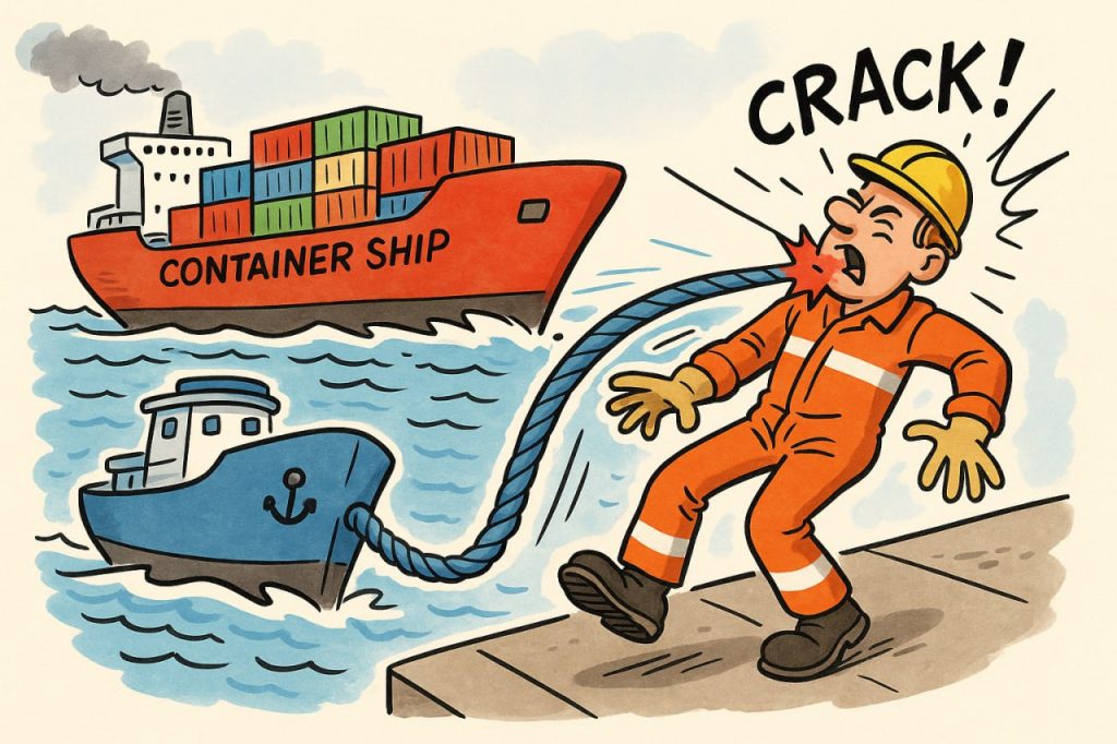 Під час стоянки Судна 1 біля терміналу, повз ходу проходило Судно 2 зі швидкістю близько 11 вузлів. Через гідродинамічний ефект Судно 1 різко змістилося від причалу: порвалися один носовий і один кормовий шварт, корпус відійшов приблизно на 50-60 метрів 👨✈️ У процесі повторного швартування старший помічник Судна 1 отримав травми – при віддачі швартова канат […]